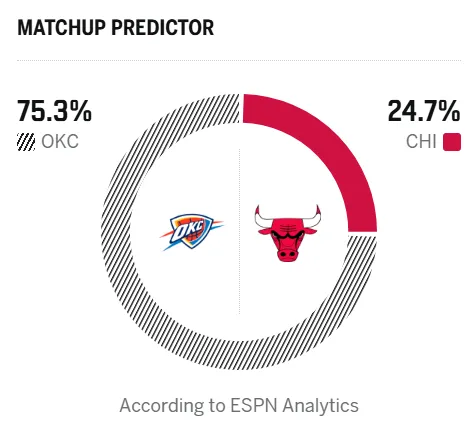 ESPN预测明日比赛:雷霆胜率75.3%,公牛胜率24.7%
